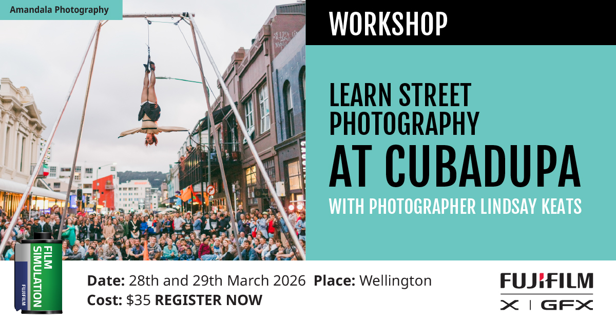 Join our immersive Street Photography Workshop at Wellington’s most iconic arts festival. This hands-on experience is designed to fast-track your observational skills and boost your confidence in approaching and photographing strangers.